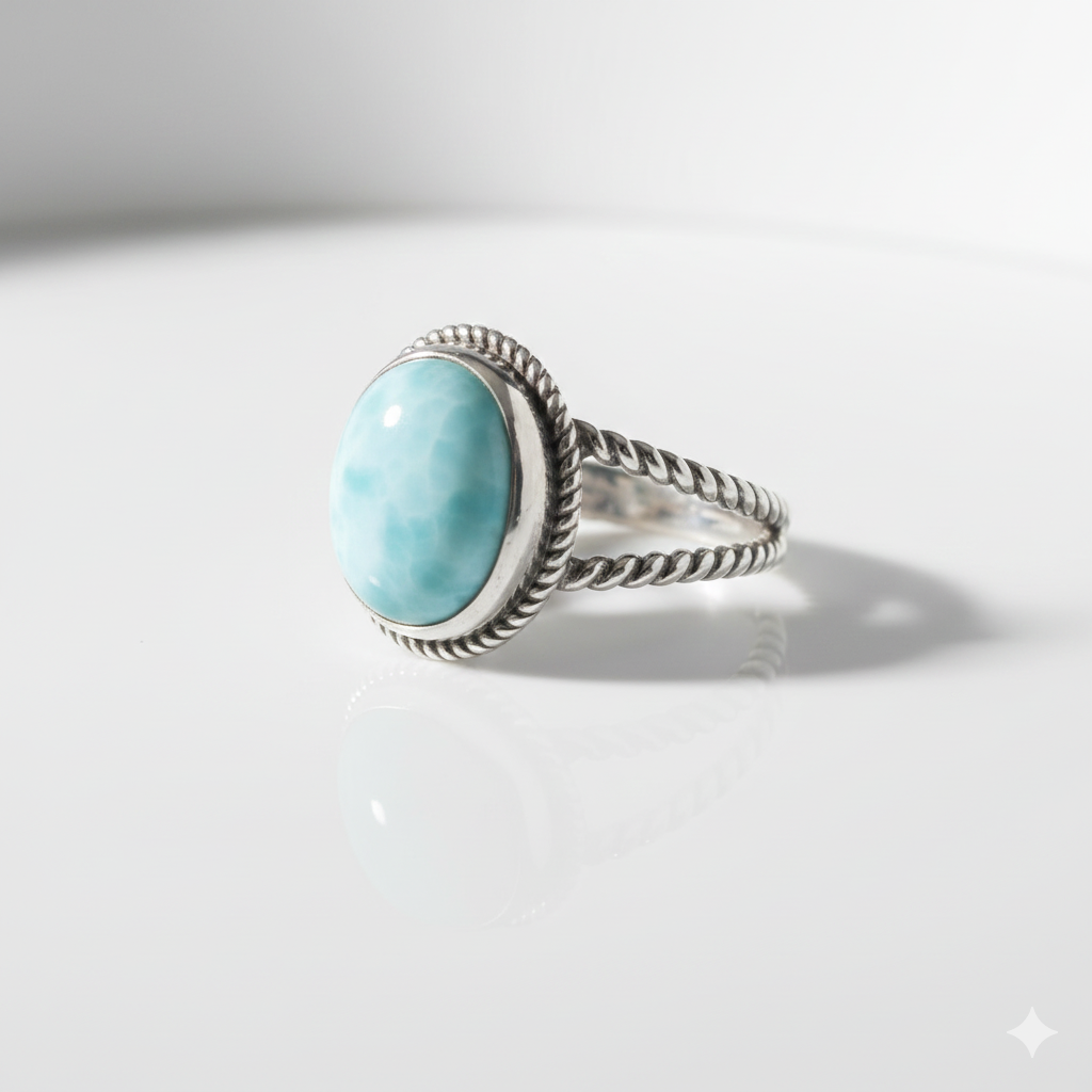 Affirmez votre élégance avec cette bague d’exception. Ce bijou marie la noblesse de l’argent 925 à la rareté mystique du Larimar. Plus qu’un simple accessoire, il invite à l’évasion. Il capture l’essence même des eaux cristallines des lagons tropicaux.