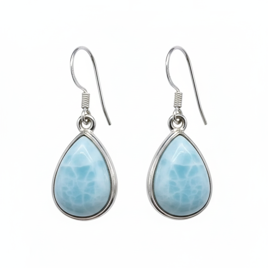 Découvrez la rareté fascinante du Larimar, une pierre fine que seule la République Dominicaine offre au monde. Nous sélectionnons rigoureusement ces gemmes pour leur taille en goutte d’eau, une coupe classique qui allonge subtilement votre port de tête. En portant ces bijoux, vous capturez la lumière sous tous les angles pour illuminer votre teint.