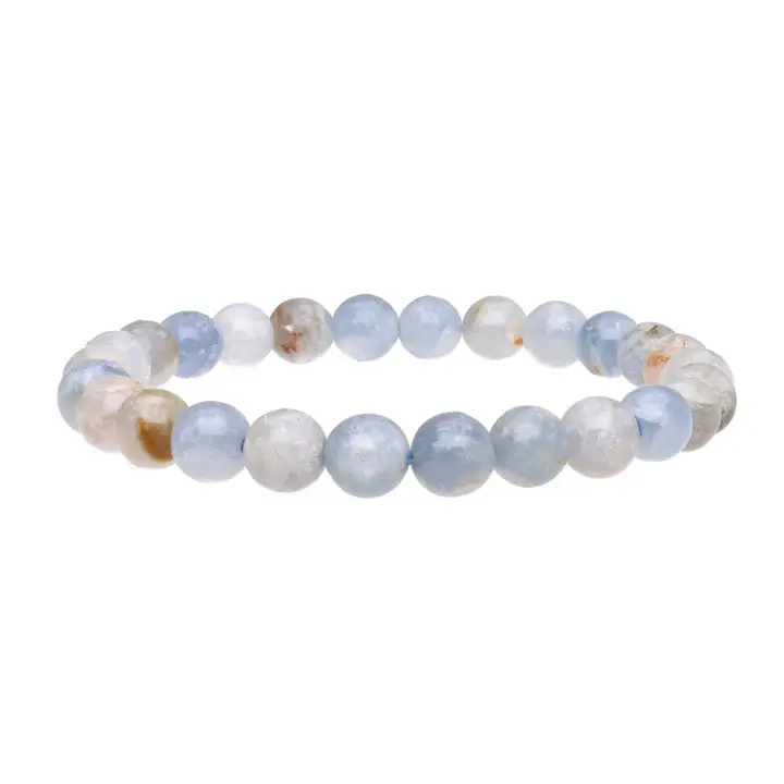 Découvrez la beauté éthérée de notre bracelet en Célestine. Ses perles de 8mm dévoilent un bleu ciel translucide parsemé de reflets cristallins naturels. Pierre de haute vibration, la Célestine est souvent appelée « pierre des anges » pour sa capacité à instaurer une atmosphère de calme profond et de pureté autour de son porteur.