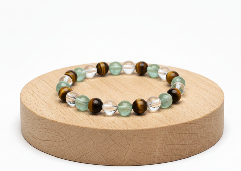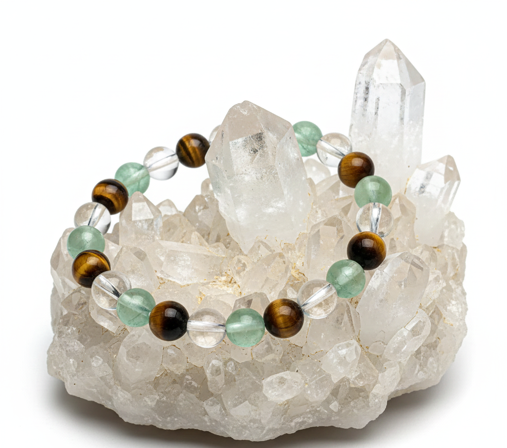 Bracelet Concentration : Oeil de Tigre, Cristal de Roche, Fluorite
